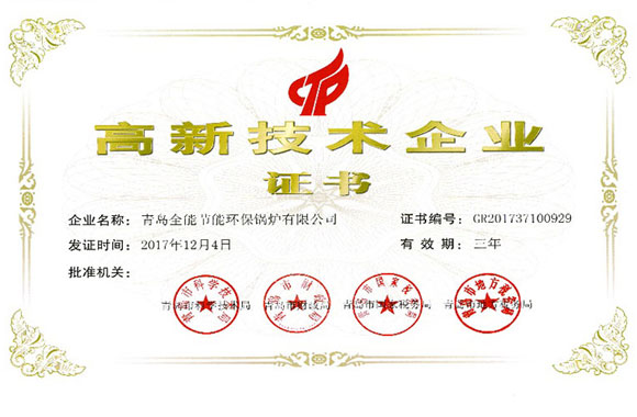 2017年12月4日,全能節(jié)能環(huán)保鍋爐子公司獲得高新技術(shù)企業(yè)證書(shū)...